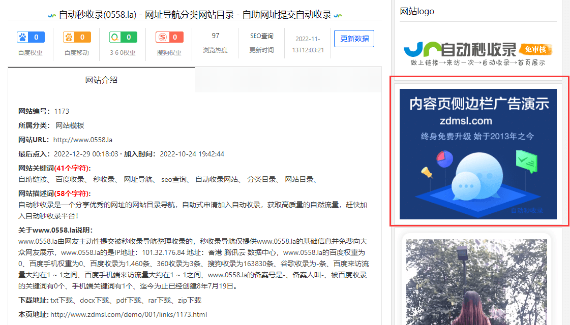 服务介绍: 本站快审直链自助下单,成功购买将立即显示在本站首页推荐,Ps:提供您被本站收录后的内容页网址编号。