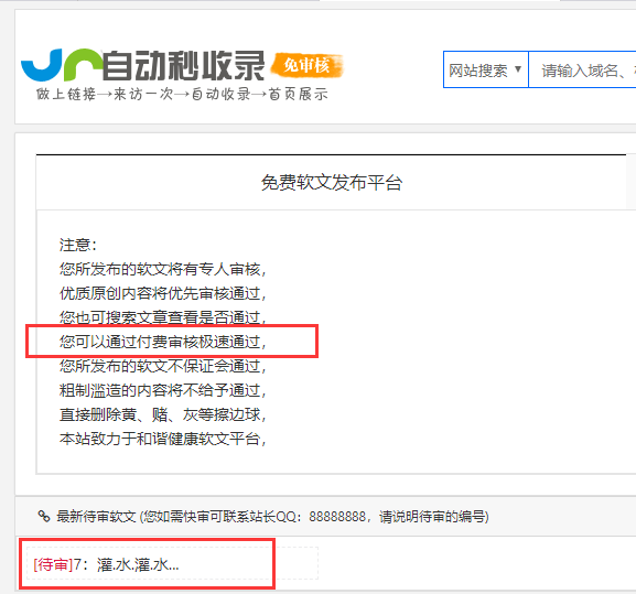 10元/站服务介绍:当软文发布后,您可以通过本服务自助付费软文审核极速通过。