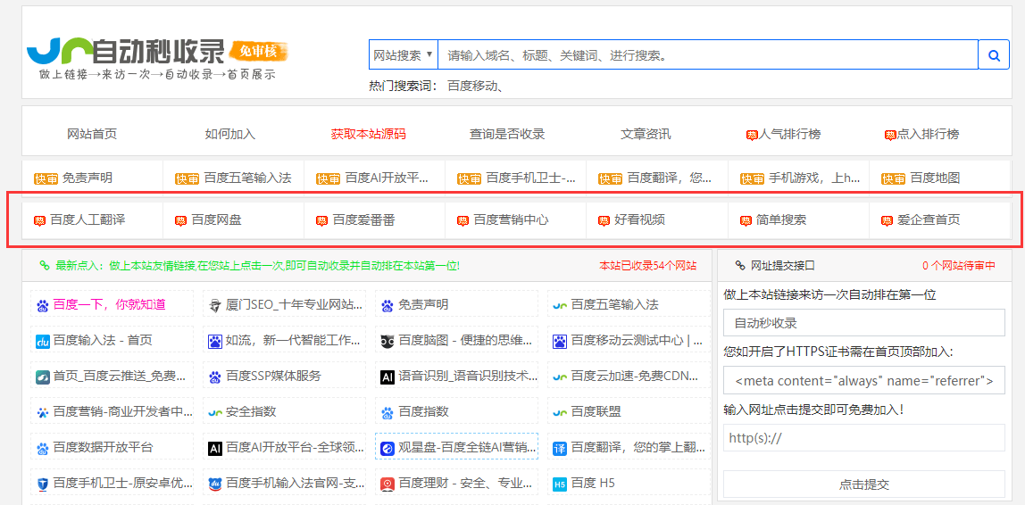 1元/月服务介绍:采用本站强制收录通道,成功购买将自动强制通过审核并显示,支持首页网址和内页网址的收录。